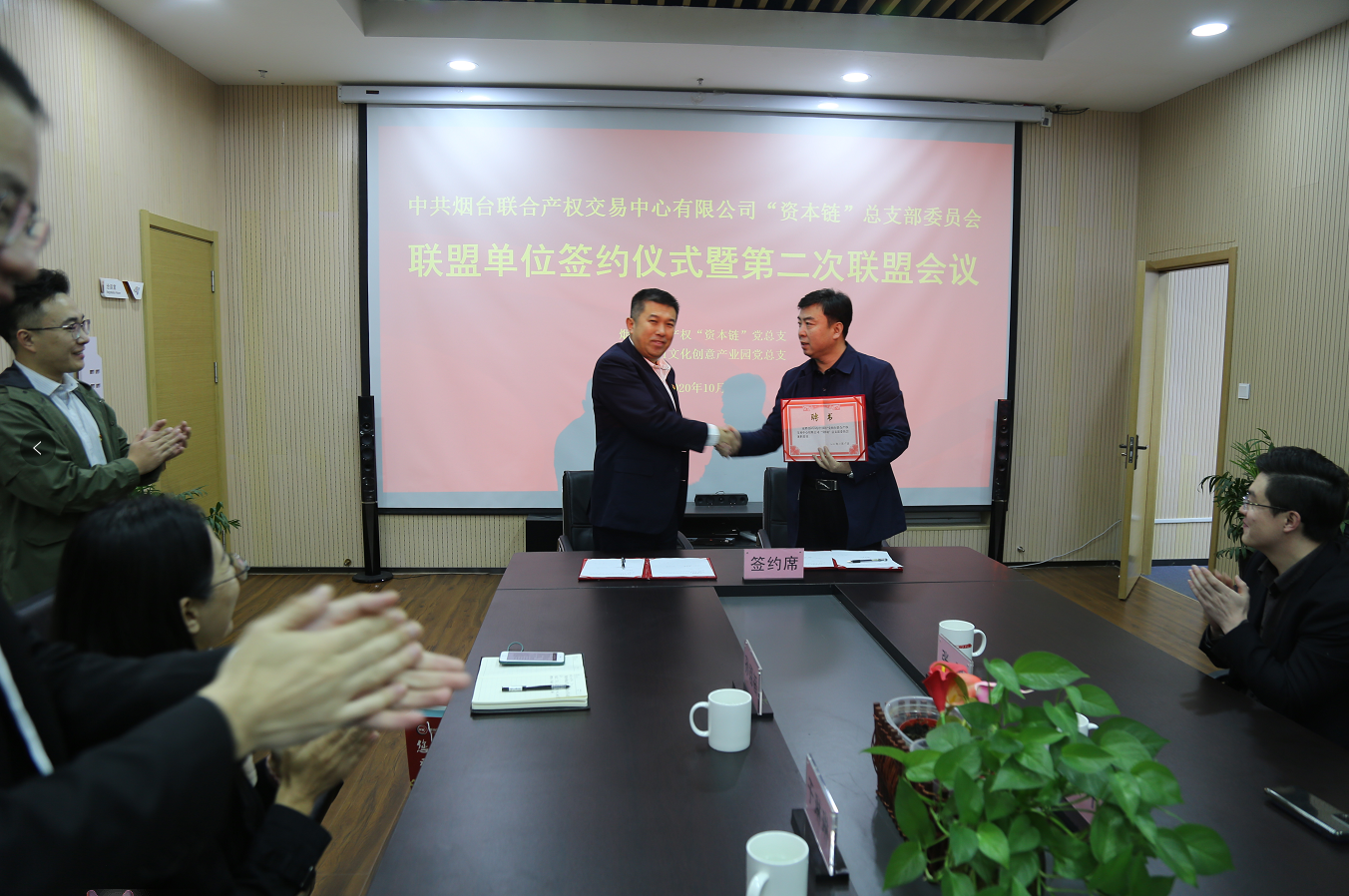 “黨是最好的信仰,建是最大的優(yōu)勢(shì)”,懸掛著的各具特色的黨建標(biāo)語(yǔ),成為了煙臺(tái)1861文化創(chuàng)意產(chǎn)業(yè)園黨建文化的最好詮釋。2020年10月29日,迎著晨曦踏著朝陽(yáng),聯(lián)合產(chǎn)權(quán)“資本鏈黨總支”會(huì)同聯(lián)盟單位煙臺(tái)萊山建行黨總支共同來(lái)到1861產(chǎn)業(yè)園召開聯(lián)盟單位簽約儀式暨第二次聯(lián)盟會(huì)議。簽約儀式上,聯(lián)合產(chǎn)權(quán)黨支部書記初志杰代表“資本鏈黨總支”同1861文化創(chuàng)意產(chǎn)業(yè)園黨總支簽訂聯(lián)盟協(xié)議,并為園區(qū)黨總支書記張儉凱同志頒發(fā)了兼職委員聘書。