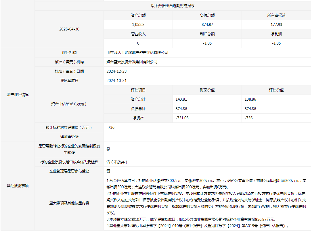 轉(zhuǎn)讓方:煙臺(tái)公共事業(yè)集團(tuán)有限公司