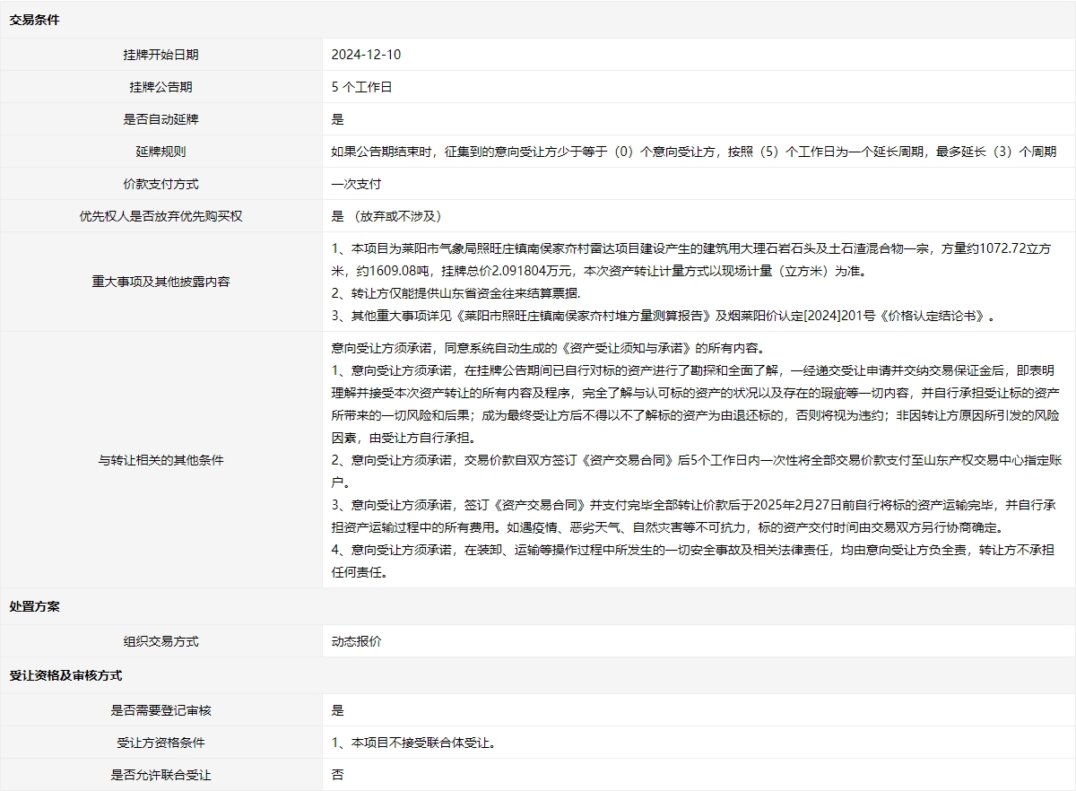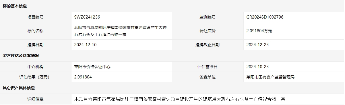 - 轉(zhuǎn)讓方:萊陽(yáng)市自然資源和規(guī)劃局
