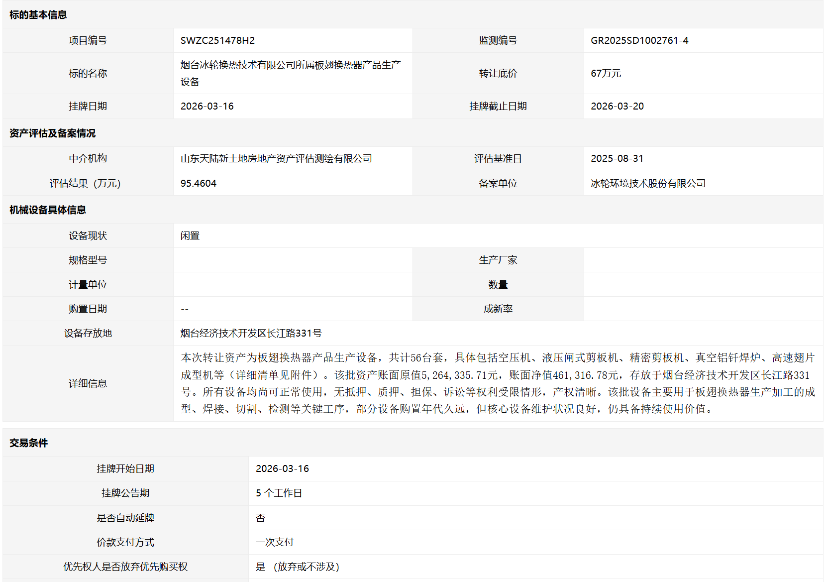 轉(zhuǎn)讓方:煙臺冰輪換熱技術(shù)有限公司