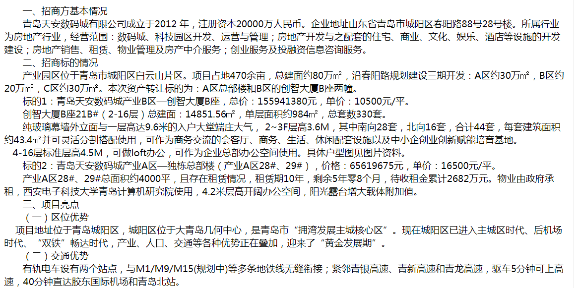 青島天安數(shù)碼城產(chǎn)業(yè)園商務(wù)樓宇轉(zhuǎn)讓