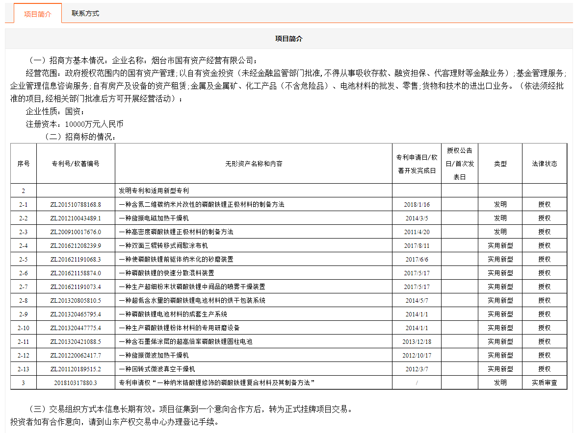 煙臺市國有資產(chǎn)經(jīng)營有限公司所屬15項(xiàng)專利使用許可權(quán)
