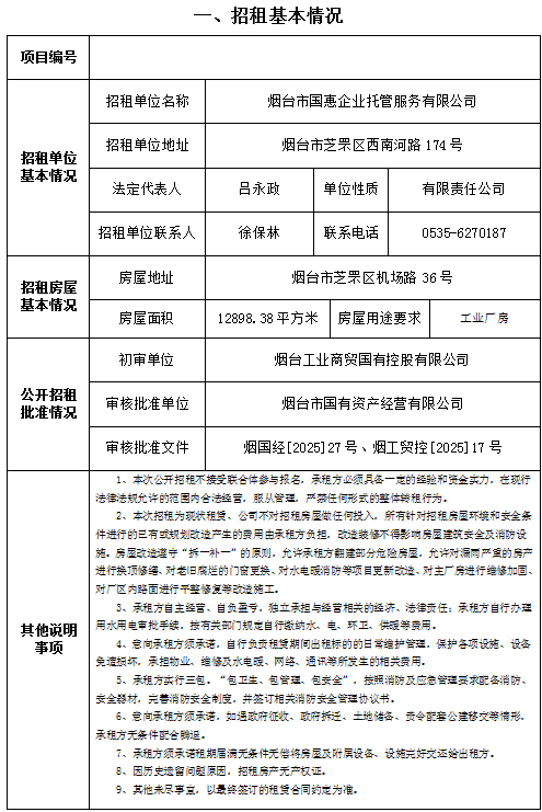 煙臺(tái)市芝罘區(qū)機(jī)場路223號(hào)房地產(chǎn)招租公告